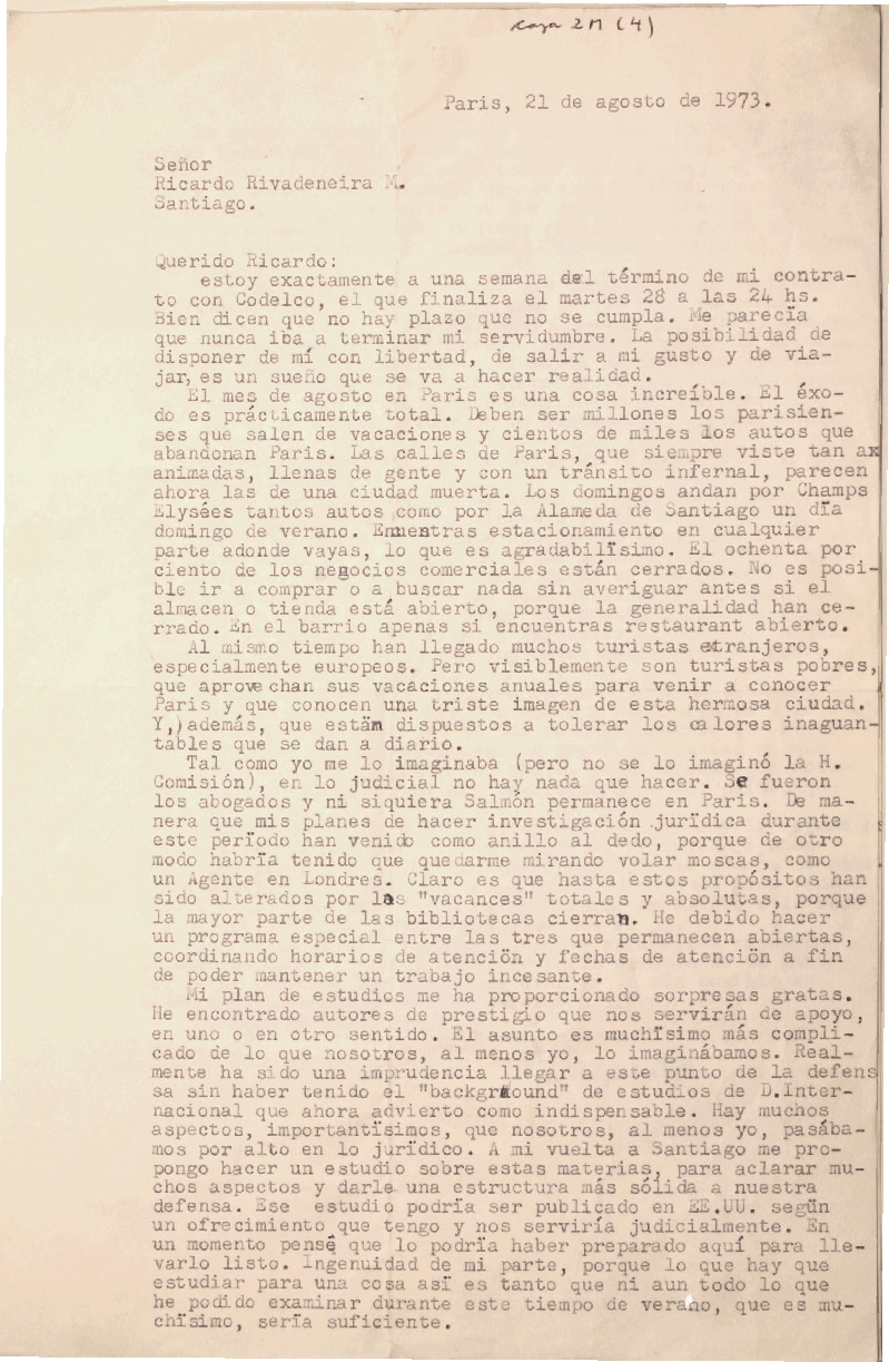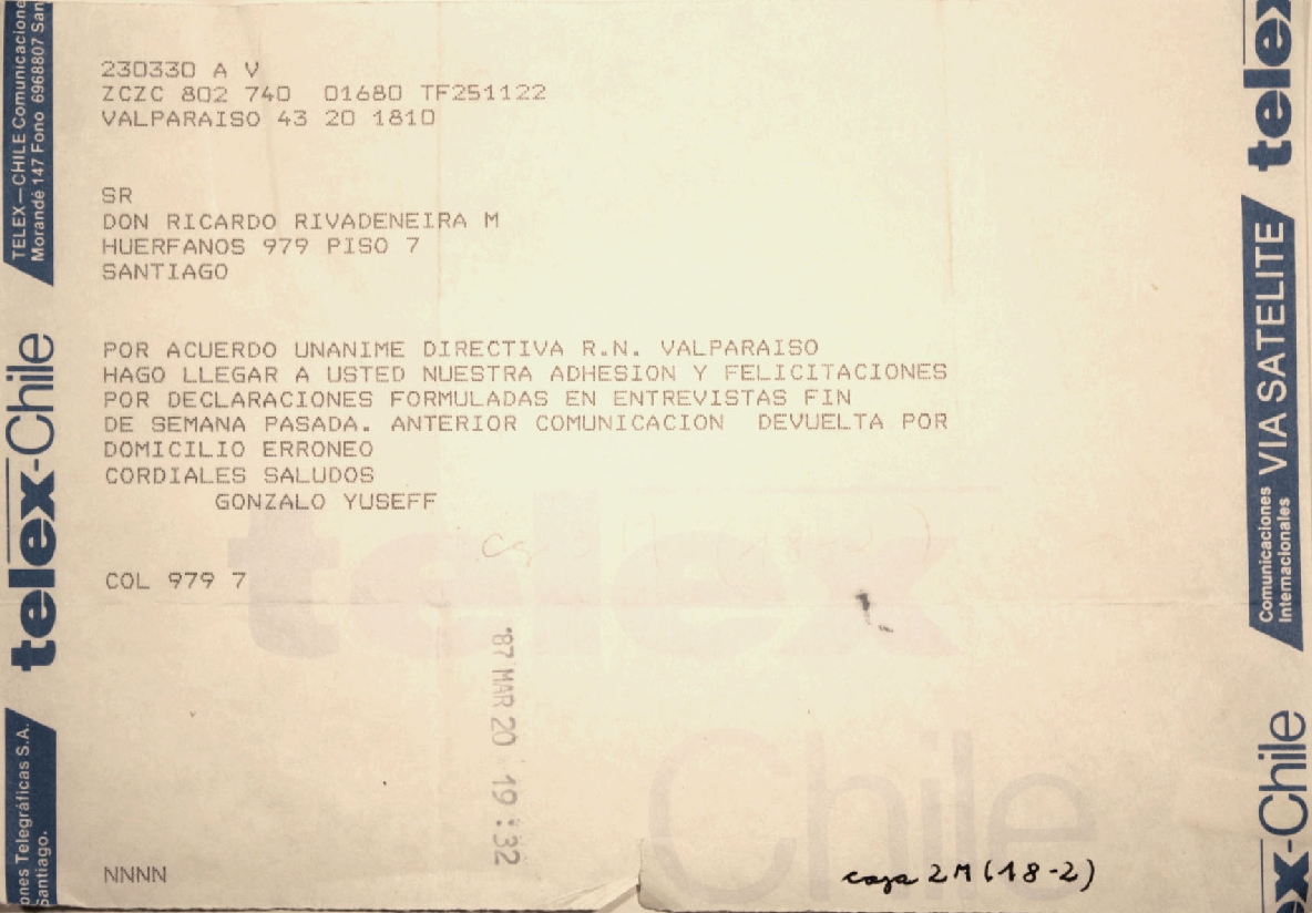 Tarjeta dirigido a Ricardo Rivadeneira...